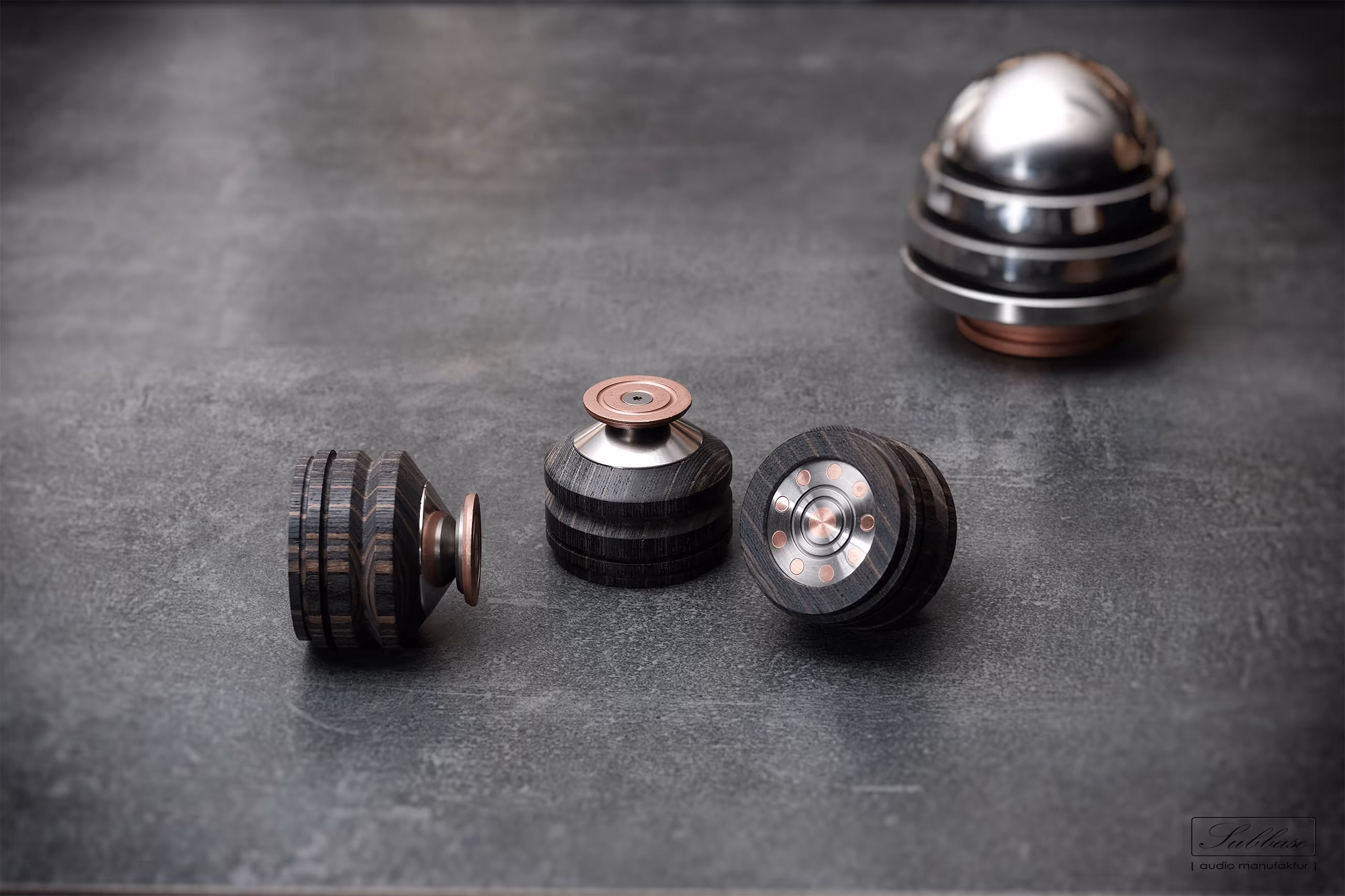 Die Composant Feet [Komponenten Füße] wurden für die direkte Ankopplung von Audio-Komponenten an unsere Composant S Gerätebasen entwickelt. Alle unsere Subbase écho Basen (Subbase écho LS, Composant S und Analogique) haben ein definiert gestimmtes Resonanzspektrum. Mit den Composant Feet werden die darauf positionierten Audio-Komponenten direkt an den Untergrund angekoppelt und das Timing in den Signal-Frequenzen erhalten. In Verbindung mit unserer Composant S und Composant S+ Basis entsteht eine perfekte Symbiose. Die Musik ergreift uns nicht nur wegen ihrem hohen Maß an Musikalität und damit verbundener Emotion, auch die Energie in jedem Ton wird erhöht. Im Zusammenspiel dieser Fähigkeiten spüren wir die Dichte und Intensivität der gespielten Instrumente.